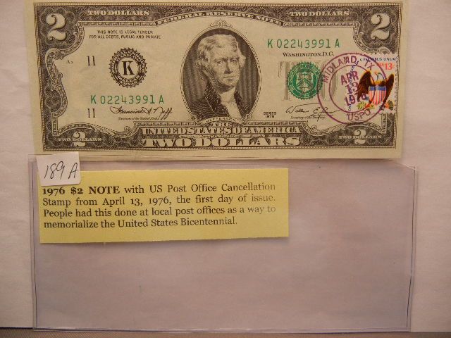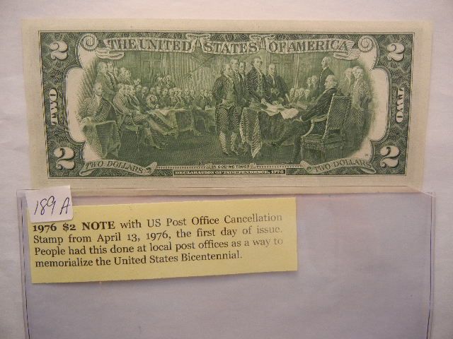 1976 $2 Note w/Us Post Office Cancellation Stamp, April 3, 1976 the first Day of Issue
