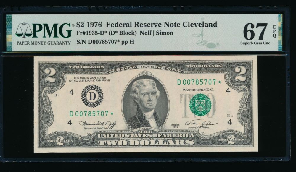 One 1976 $2 STAR Cleveland FRN PMG 67EPQ.