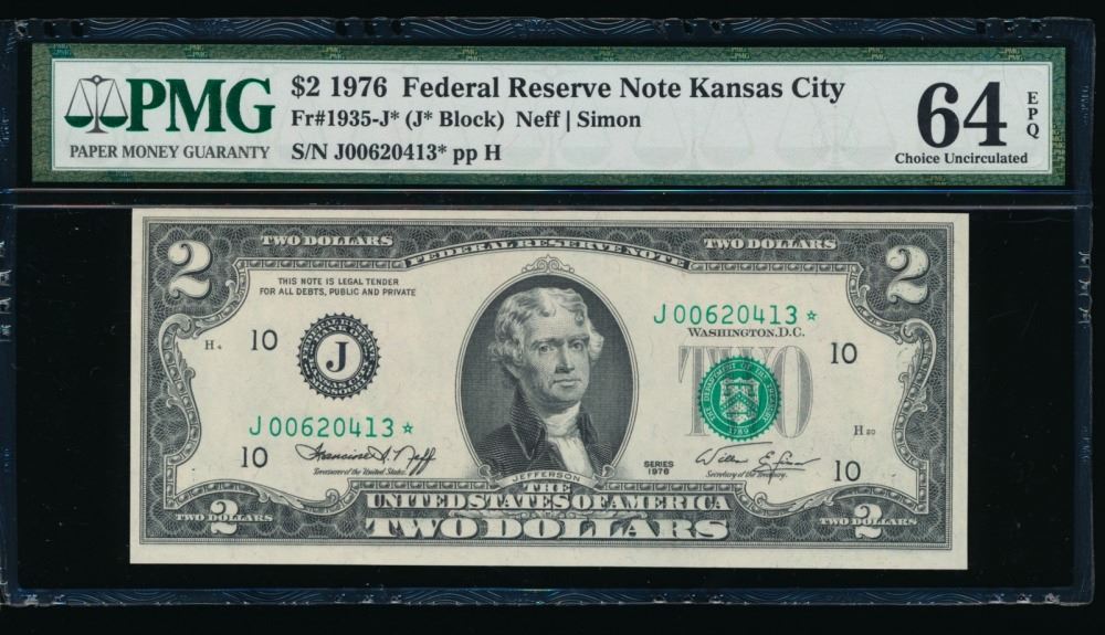 One 1976 $2 STAR Kansas City FRN PMG 64EPQ.