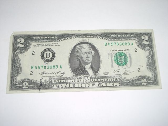 1976 $2 U.S. BILLS *RARE UNC HIGH GRADE* SERIAL # B49783089A!! ***Coin, Currency & All Items Listed in this auction - Grades, Conditions and Values are not Safe Deposit Coins LLC Responsibilty. Grades, Condition and Values are determined by Consigner(s) & Buyers ONLY***