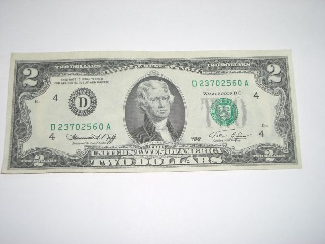 1976 $2 U.S. BILLS *RARE UNC HIGH GRADE* SERIAL #D23702560A!! ***Coin, Currency & All Items Listed in this auction - Grades, Conditions and Values are not Safe Deposit Coins LLC Responsibilty. Grades, Condition and Values are determined by Consigner(s) & Buyers ONLY***