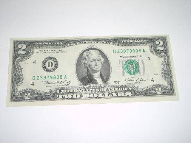 1976 $2 U.S. BILLS *RARE UNC HIGH GRADE* SERIAL # D23979808A!! ***Coin, Currency & All Items Listed in this auction - Grades, Conditions and Values are not Safe Deposit Coins LLC Responsibilty. Grades, Condition and Values are determined by Consigner(s) & Buyers ONLY***