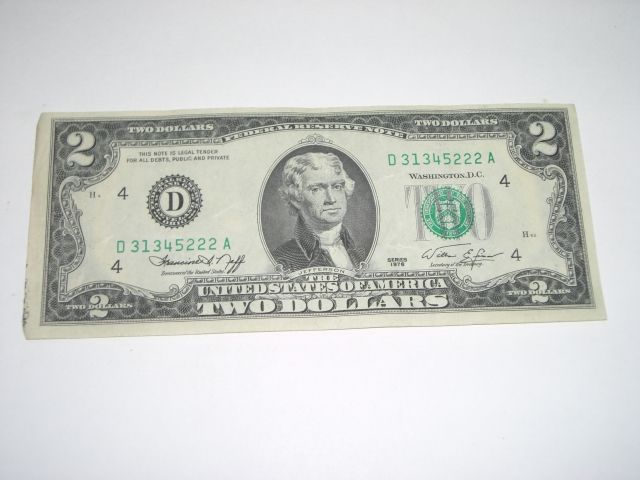 1976 $2 U.S. BILLS *RARE UNC HIGH GRADE* SERIAL # D31345222A!! ***Coin, Currency & All Items Listed in this auction - Grades, Conditions and Values are not Safe Deposit Coins LLC Responsibilty. Grades, Condition and Values are determined by Consigner(s) & Buyers ONLY***
