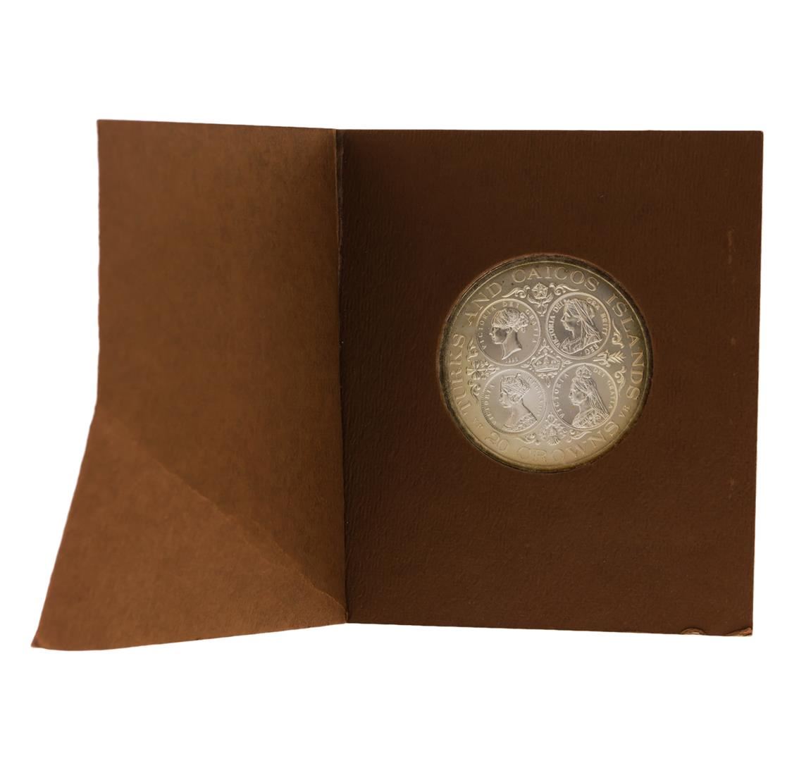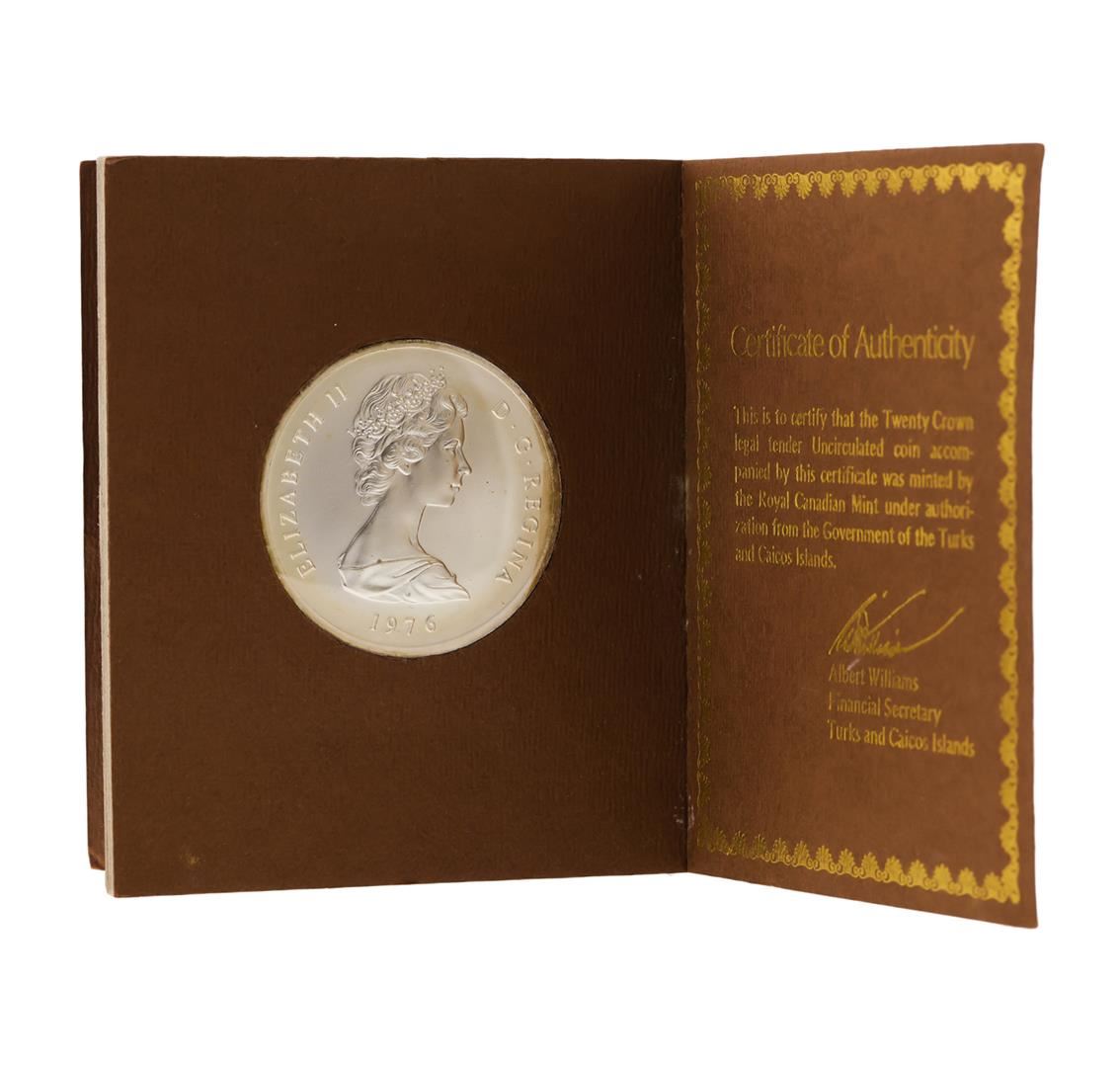 One 1976 20 Victoria Crowns Turks and Caicos Islands Silver Coin.
