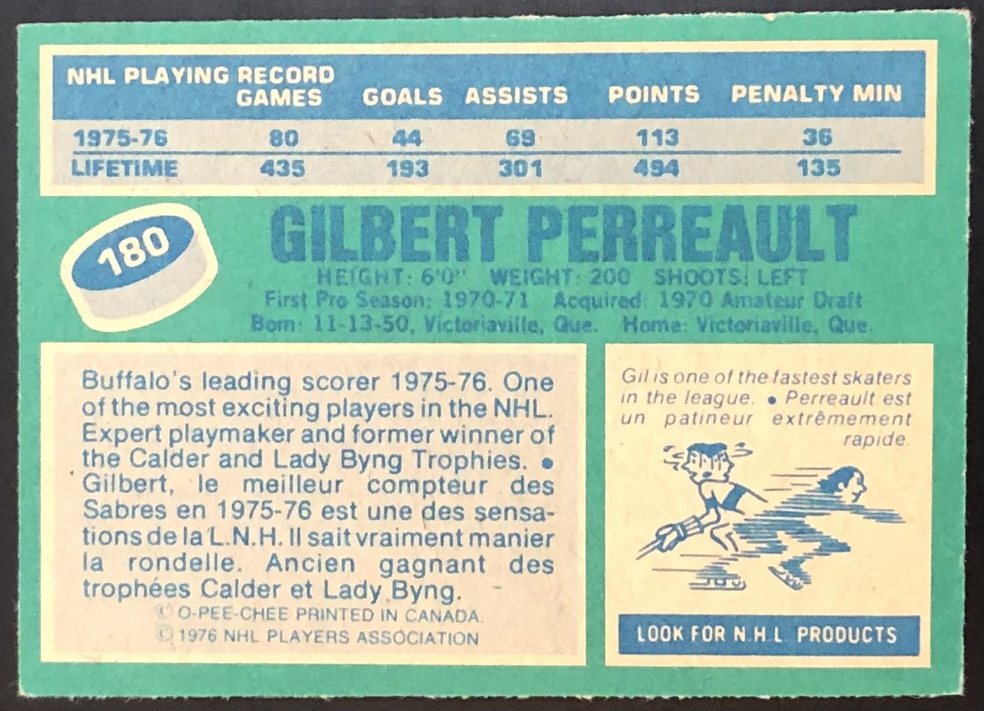 Card #180 NHL, hockey, vintage, OPC, hall of fame