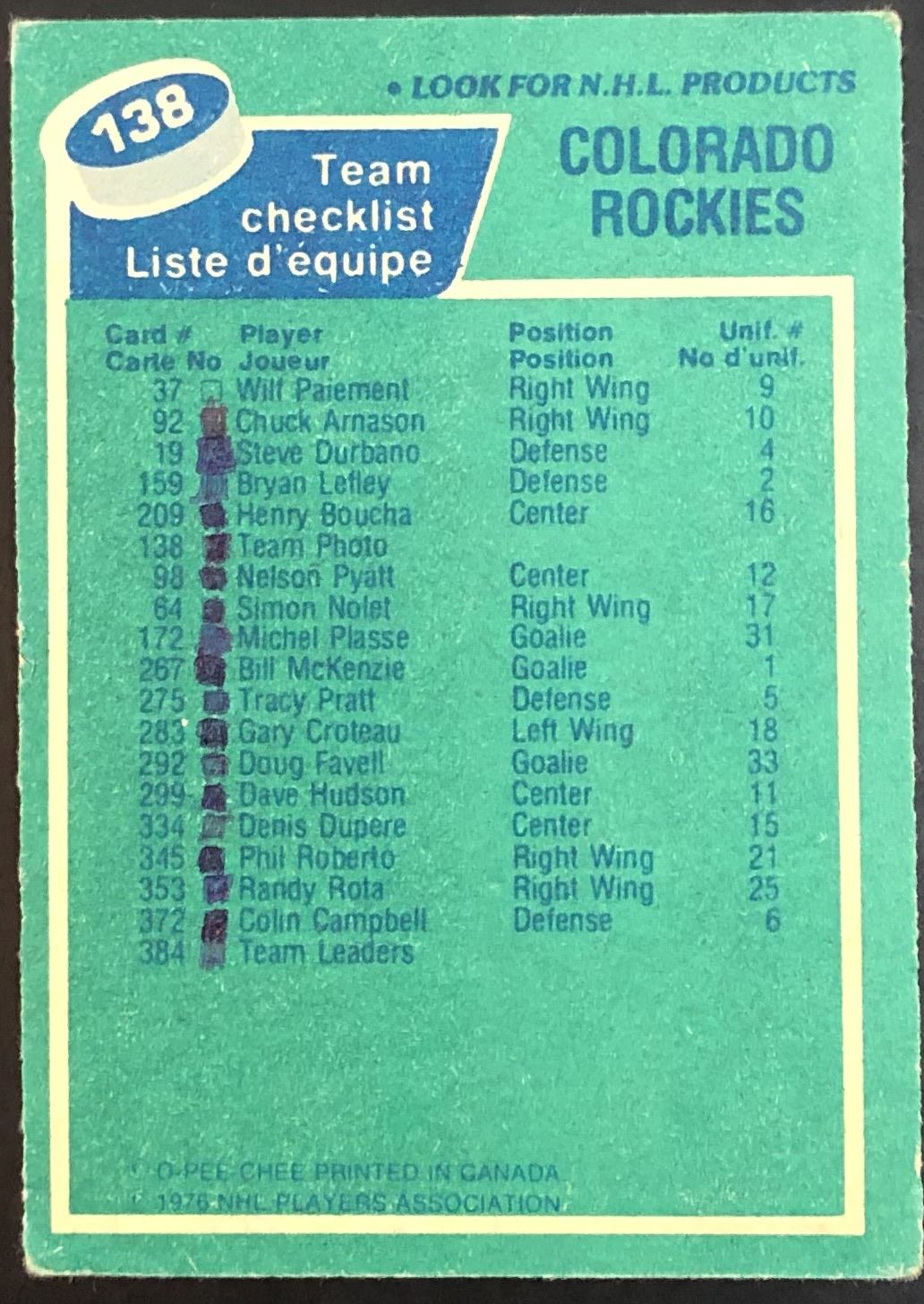 Card #138, ink on back NHL, hockey, vintage, OPC