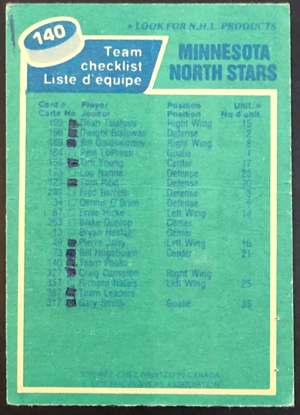 Card #140, ink on back NHL, hockey, vintage, OPC