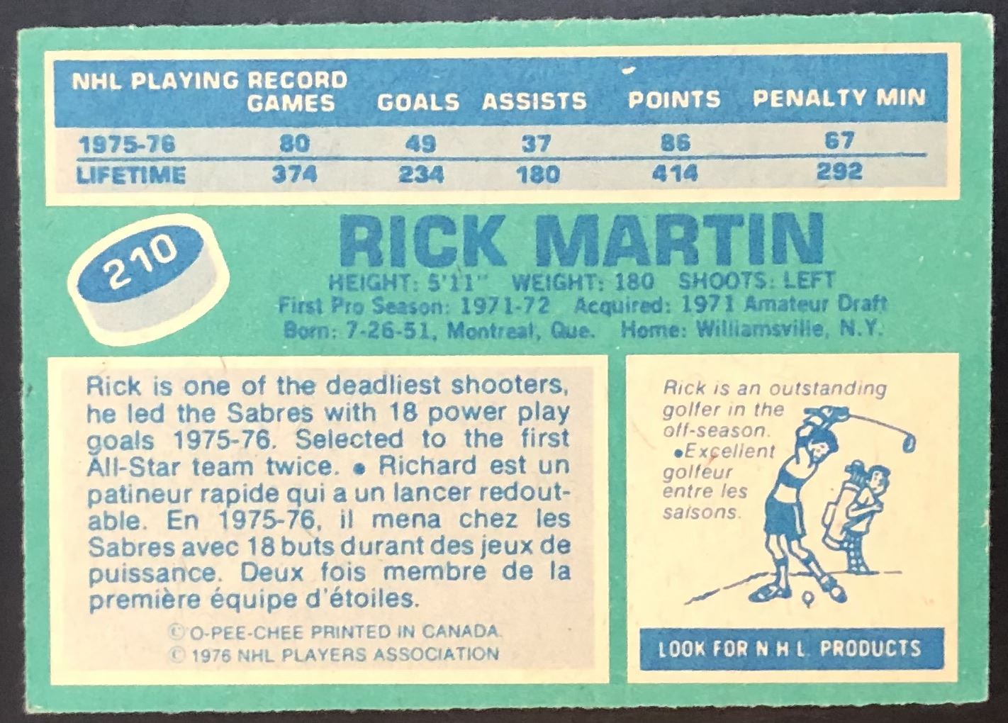 Card #210 NHL, hockey, vintage, OPC, hall of fame