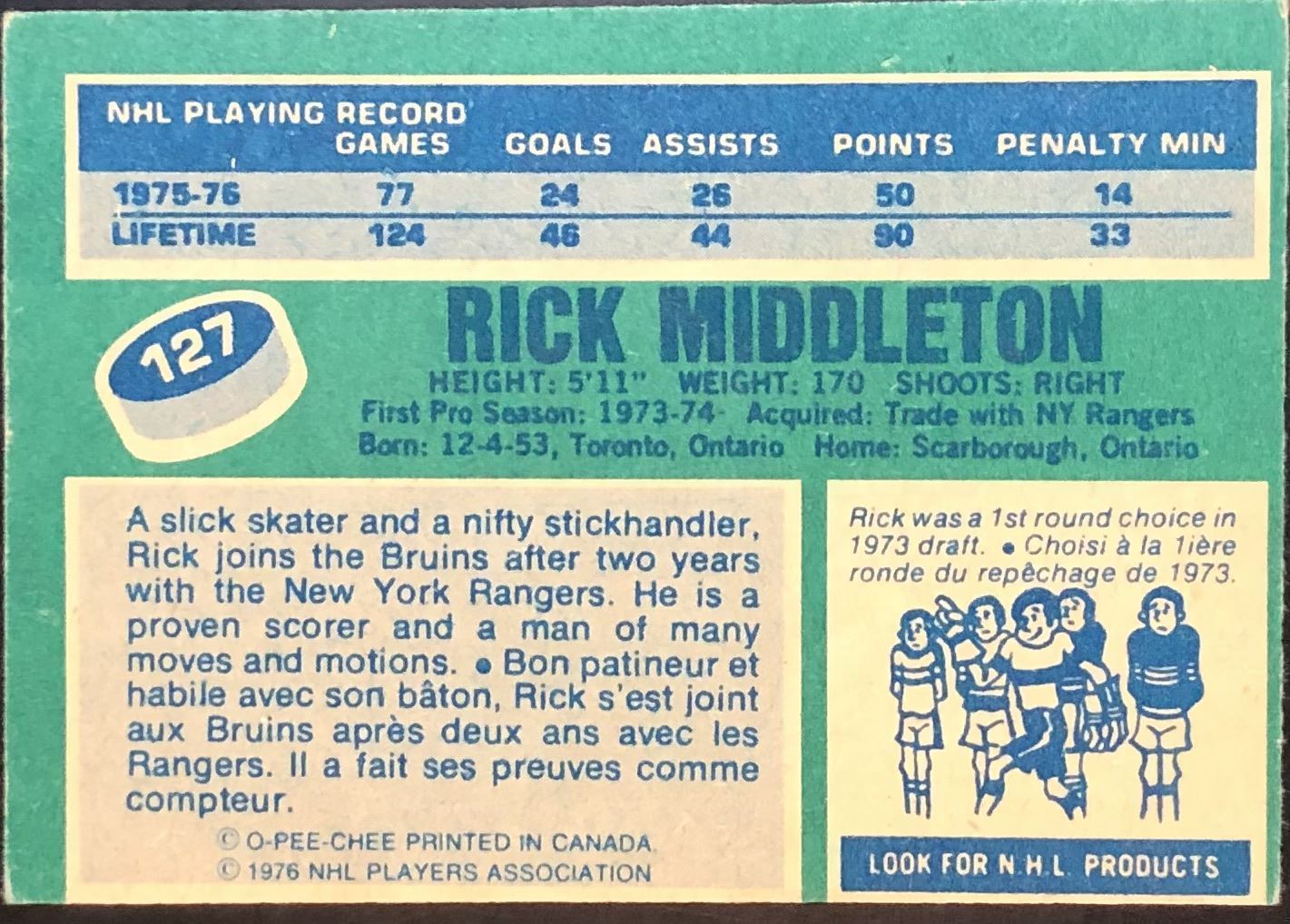 Card #127 NHL, hockey, vintage, OPC, hall of fame