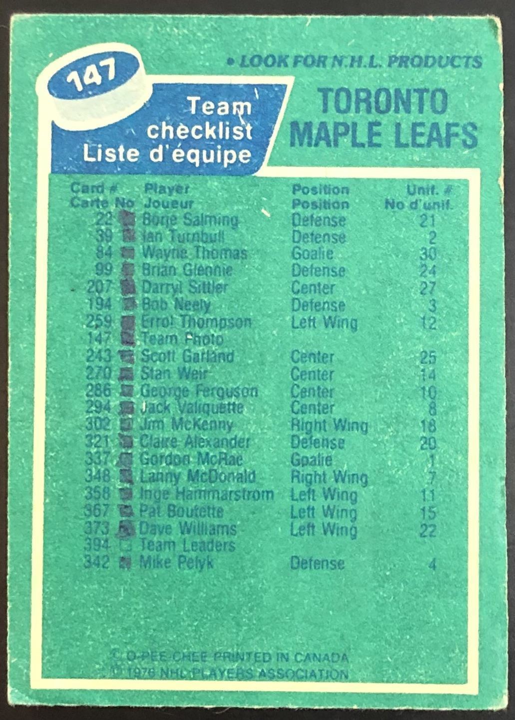 Card #147, ink on back NHL, hockey, vintage, OPC