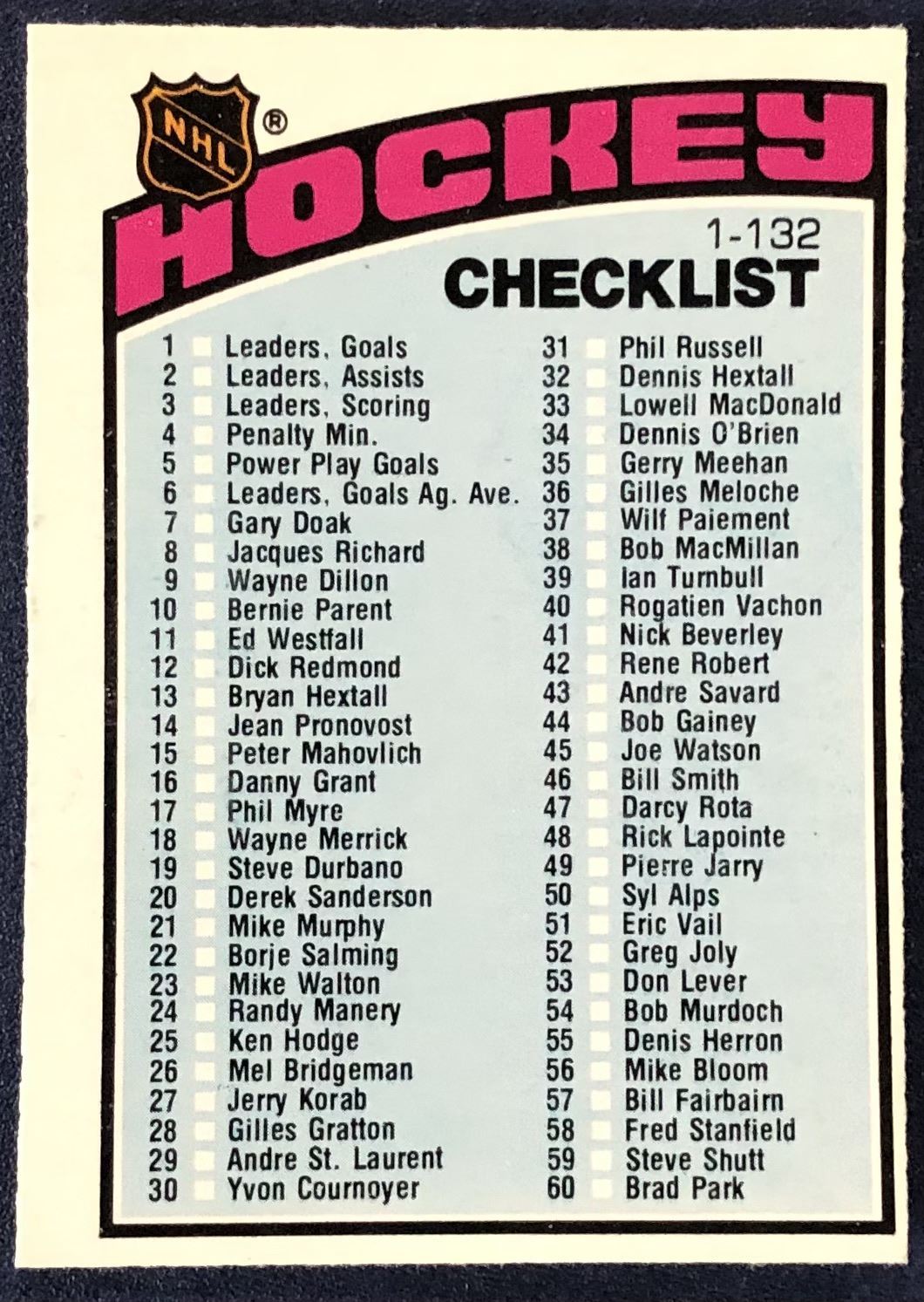 Card #116 NHL, hockey, OPC, vintage