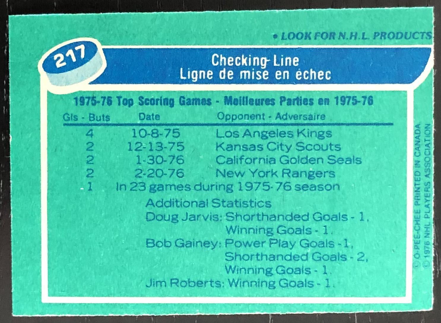 Card #217 NHL, hockey, vintage, OPC, hall of fame
