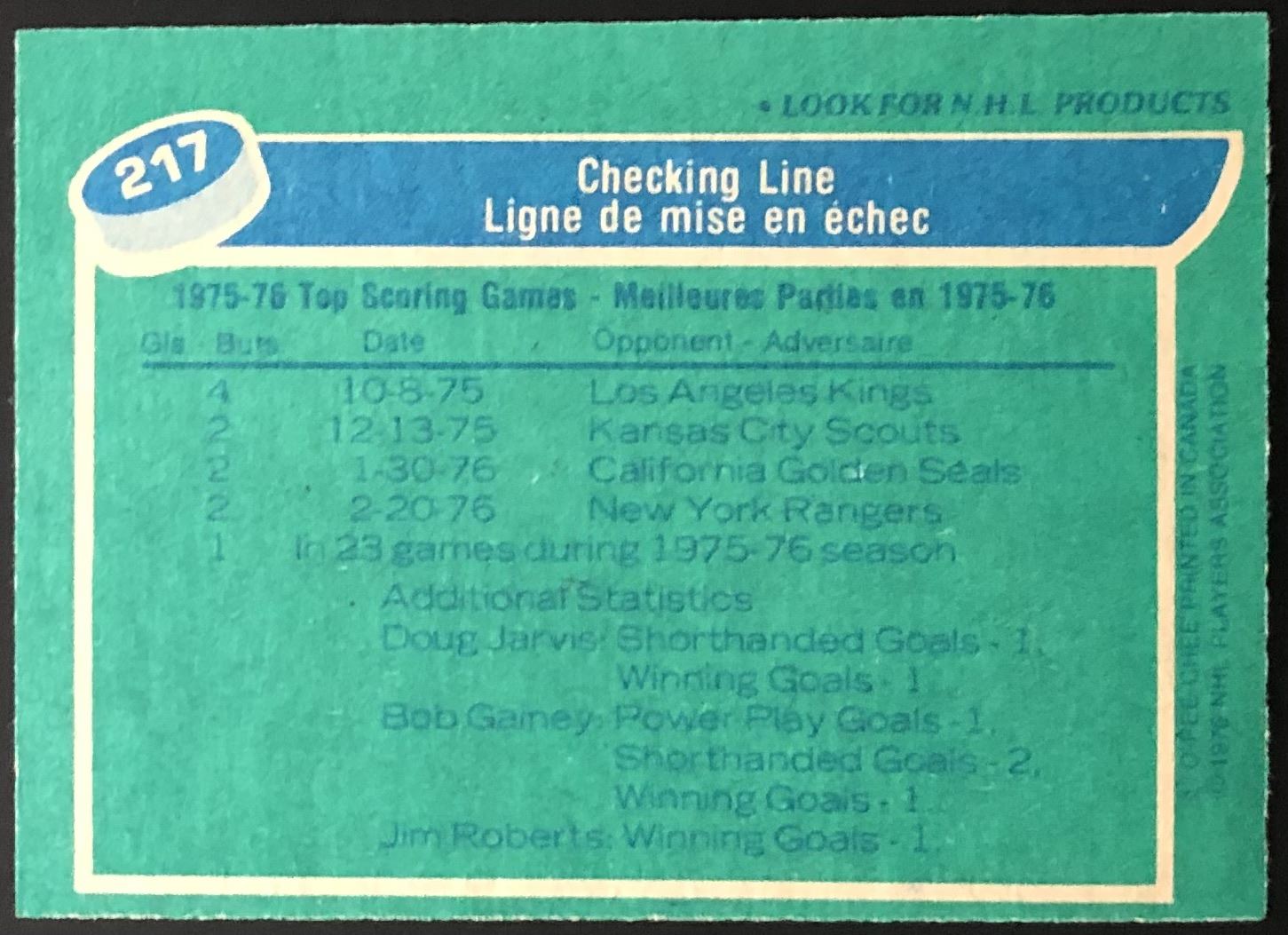 Card #217 OPC, hockey, NHL, vintage, hall of fame