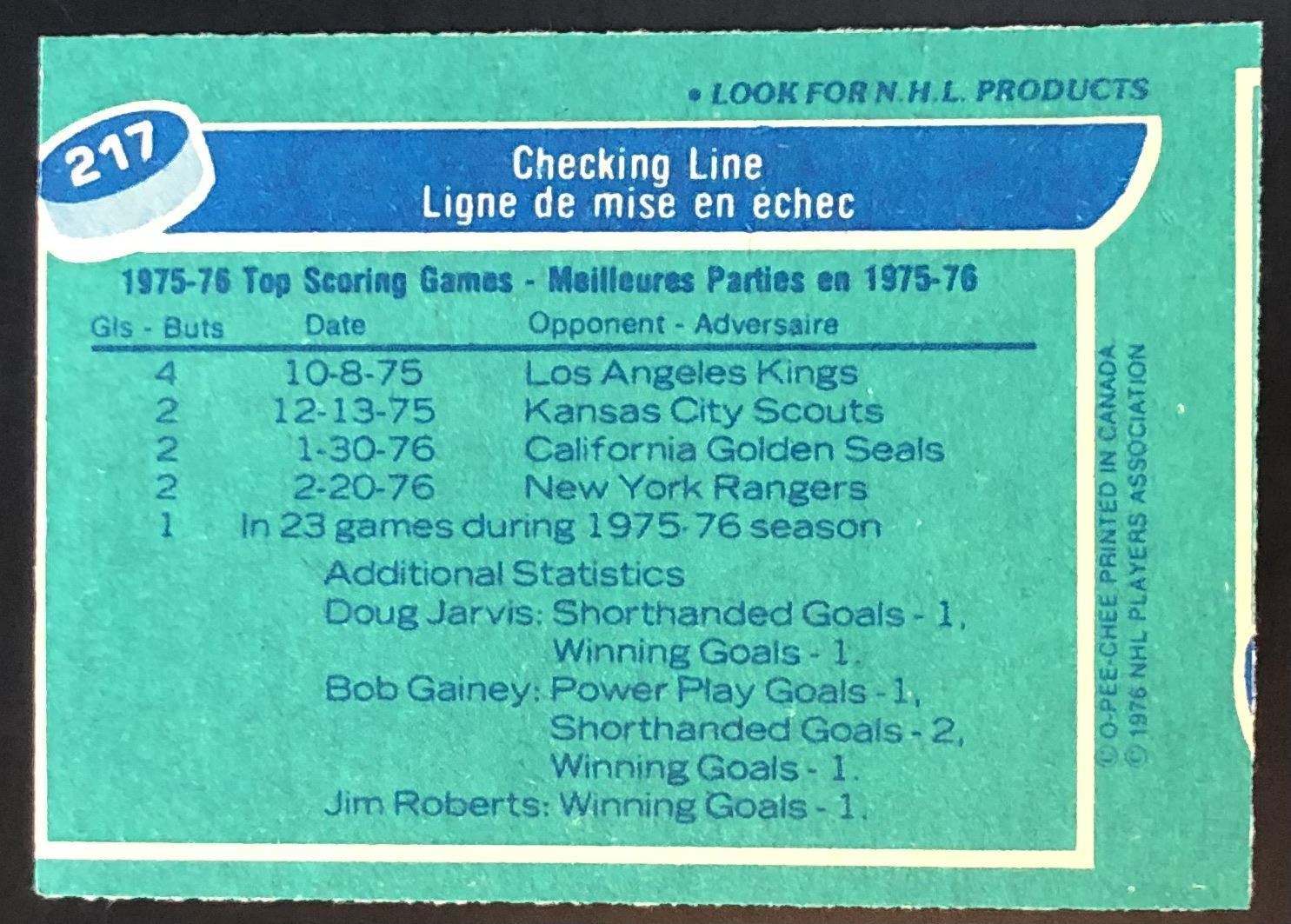 Card #217 NHL, hockey, OPC, vintage, hall of fame