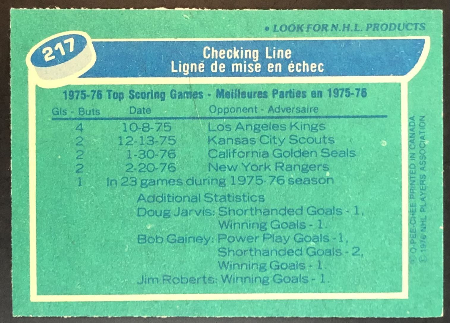 Card #217 OPC, vintage, NHL, hockey, hall of fame