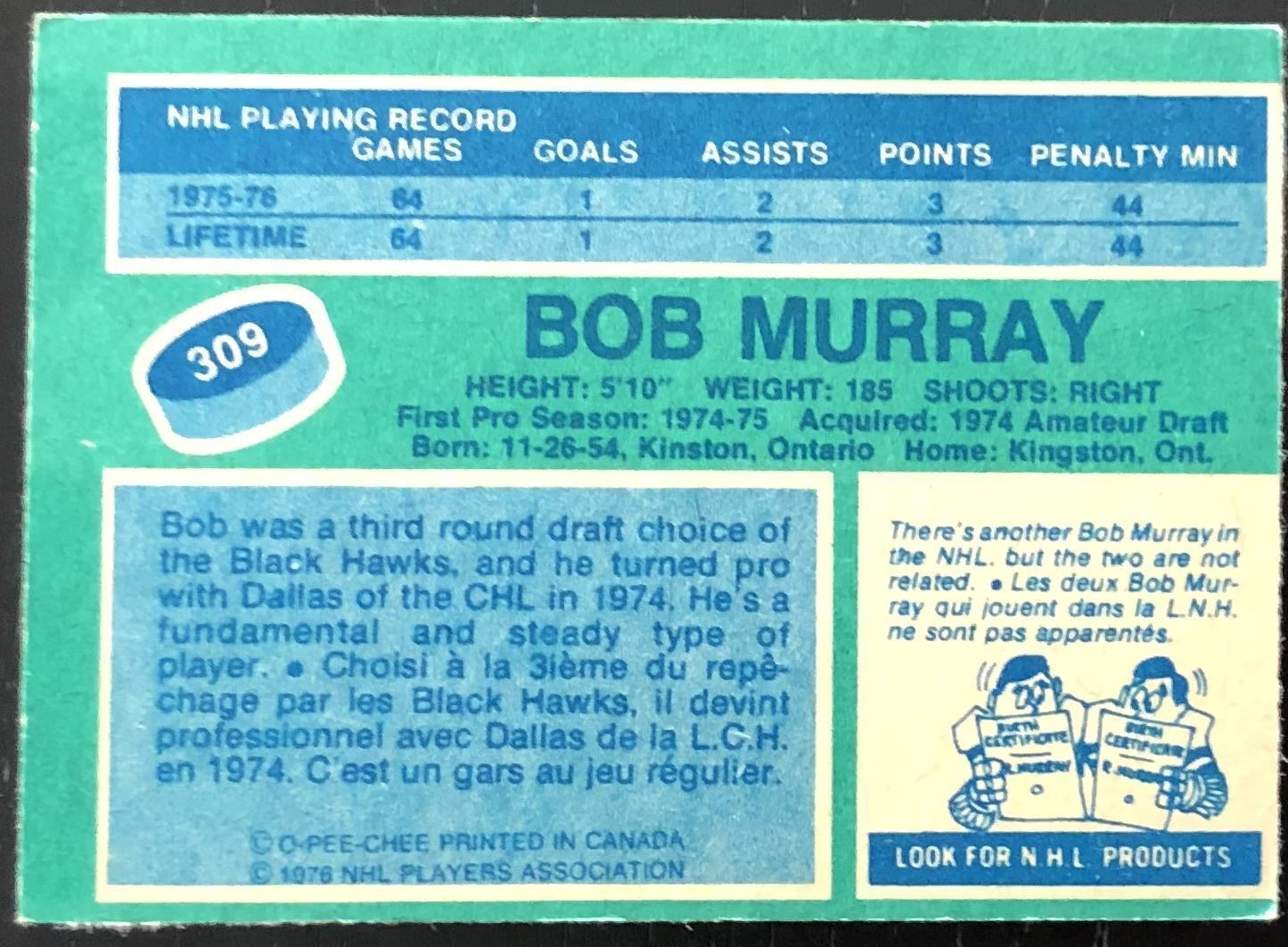 Card #309 hockey, NHL, vintage, OPC, rookie