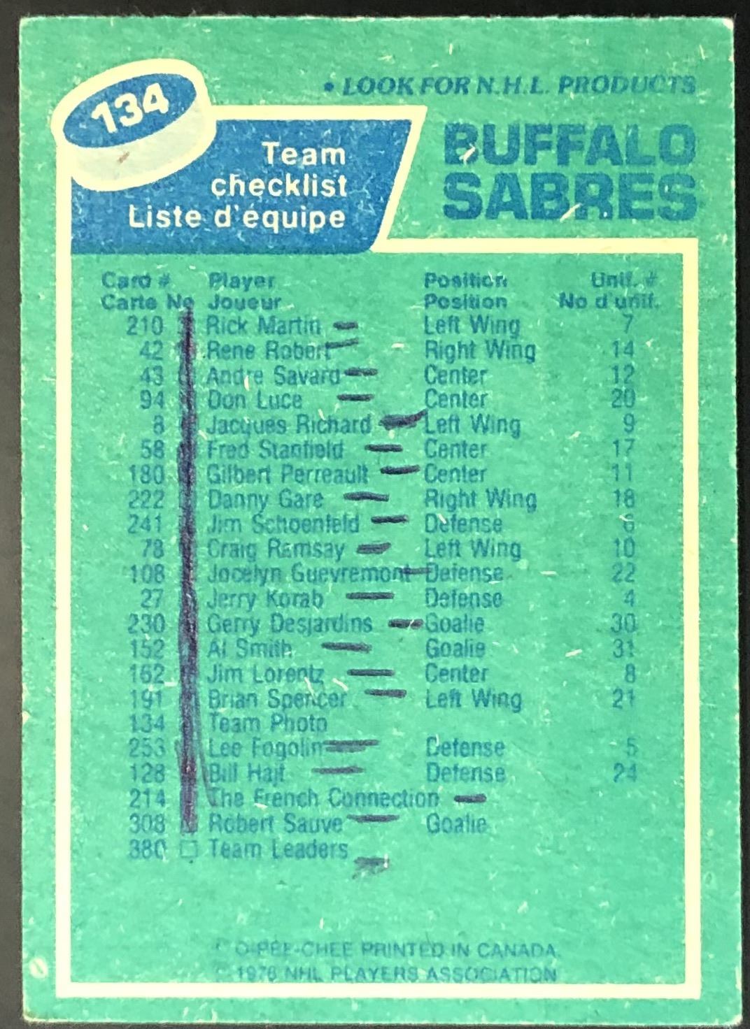 Card #134, ink on card's back NHL, hockey, OPC, vintage
