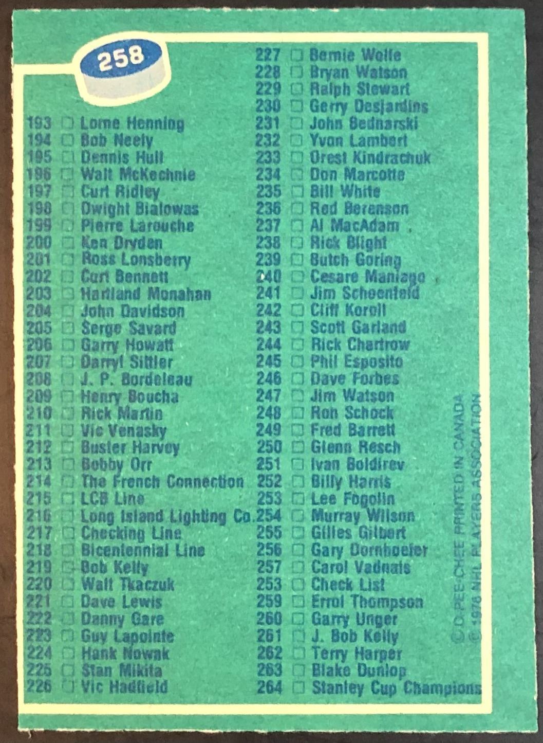 Card #258 NHL, hockey, OPC, vintage