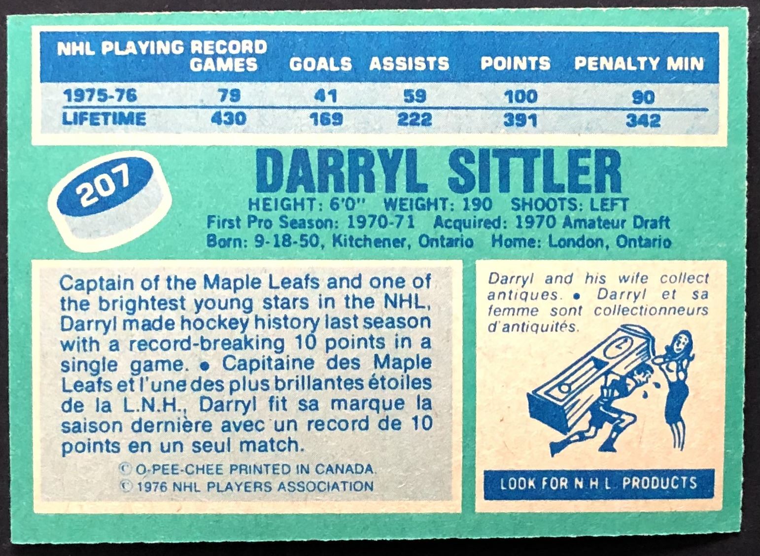 Card #207 NHL, hockey, vintage, hall of fame, OPC