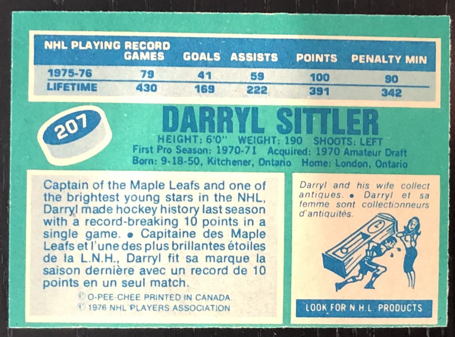 Card #207 NHL, hockey, vintage, OPC, hall of fame
