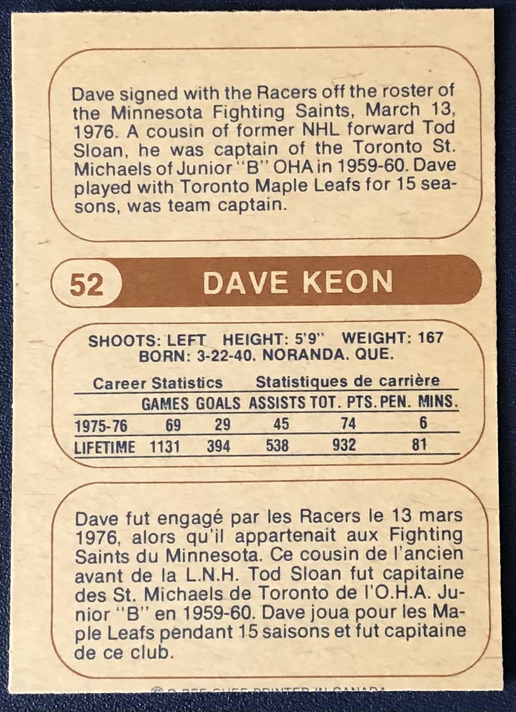 Card #52 vintage, hockey, WHA, OPC, hall of fame