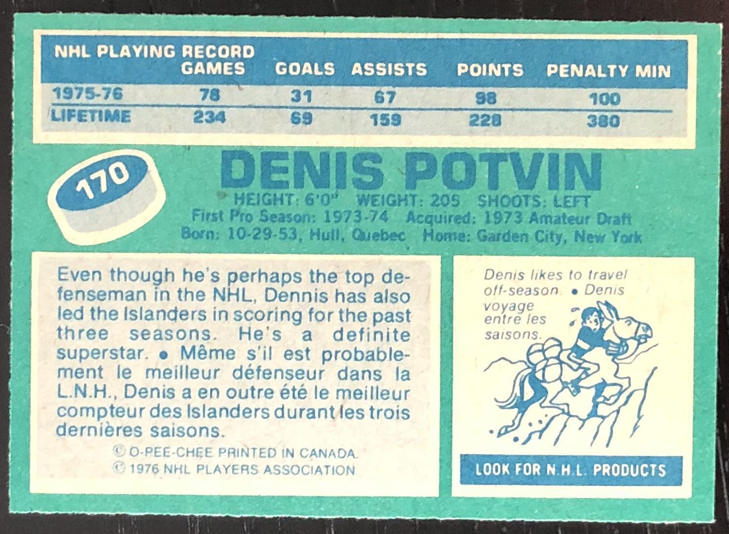 Card #170 NHL, hockey, vintage, OPC, hall of fame