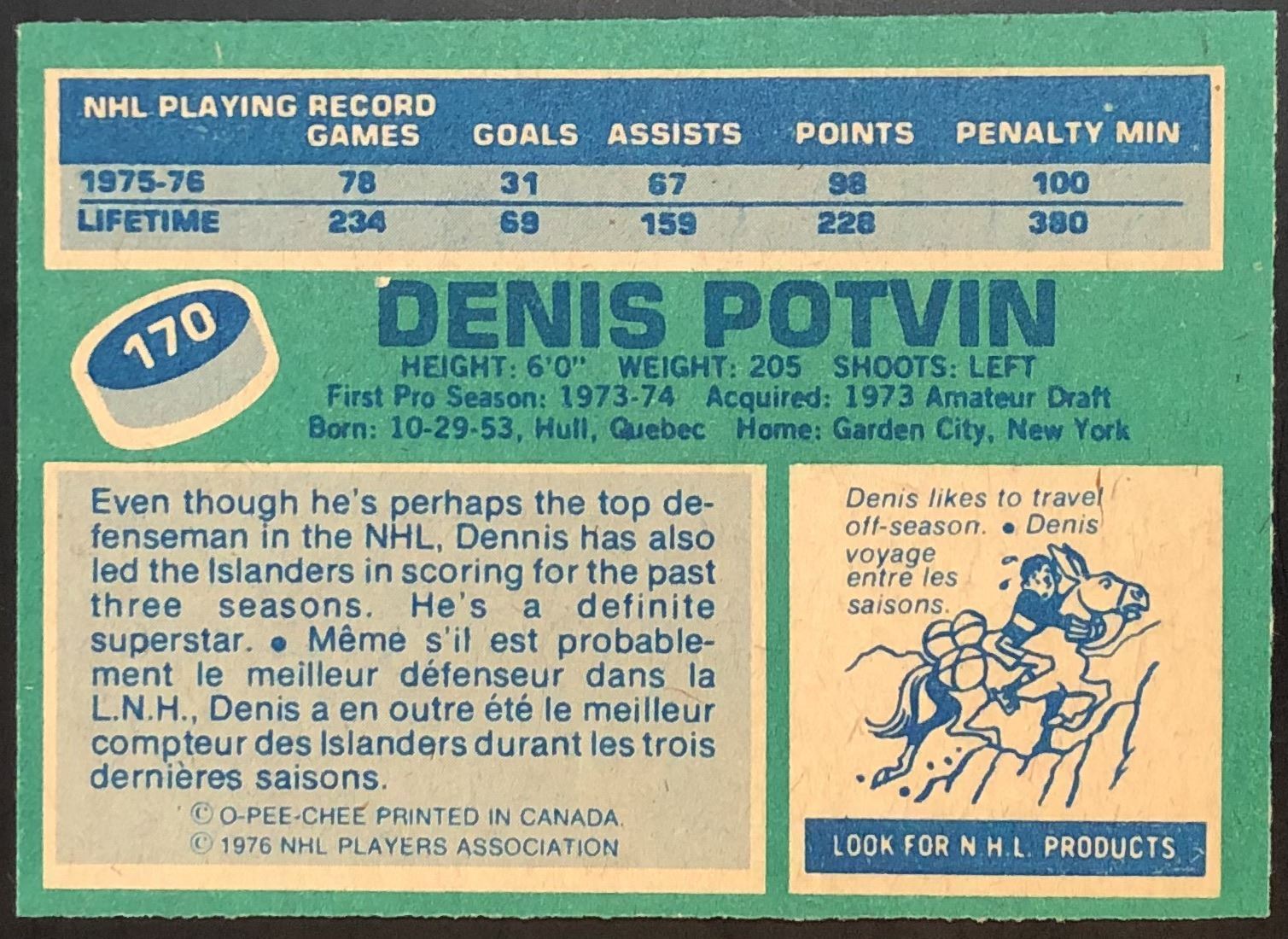 Card #170 hockey, NHL, vintage, OPC, hall of fame