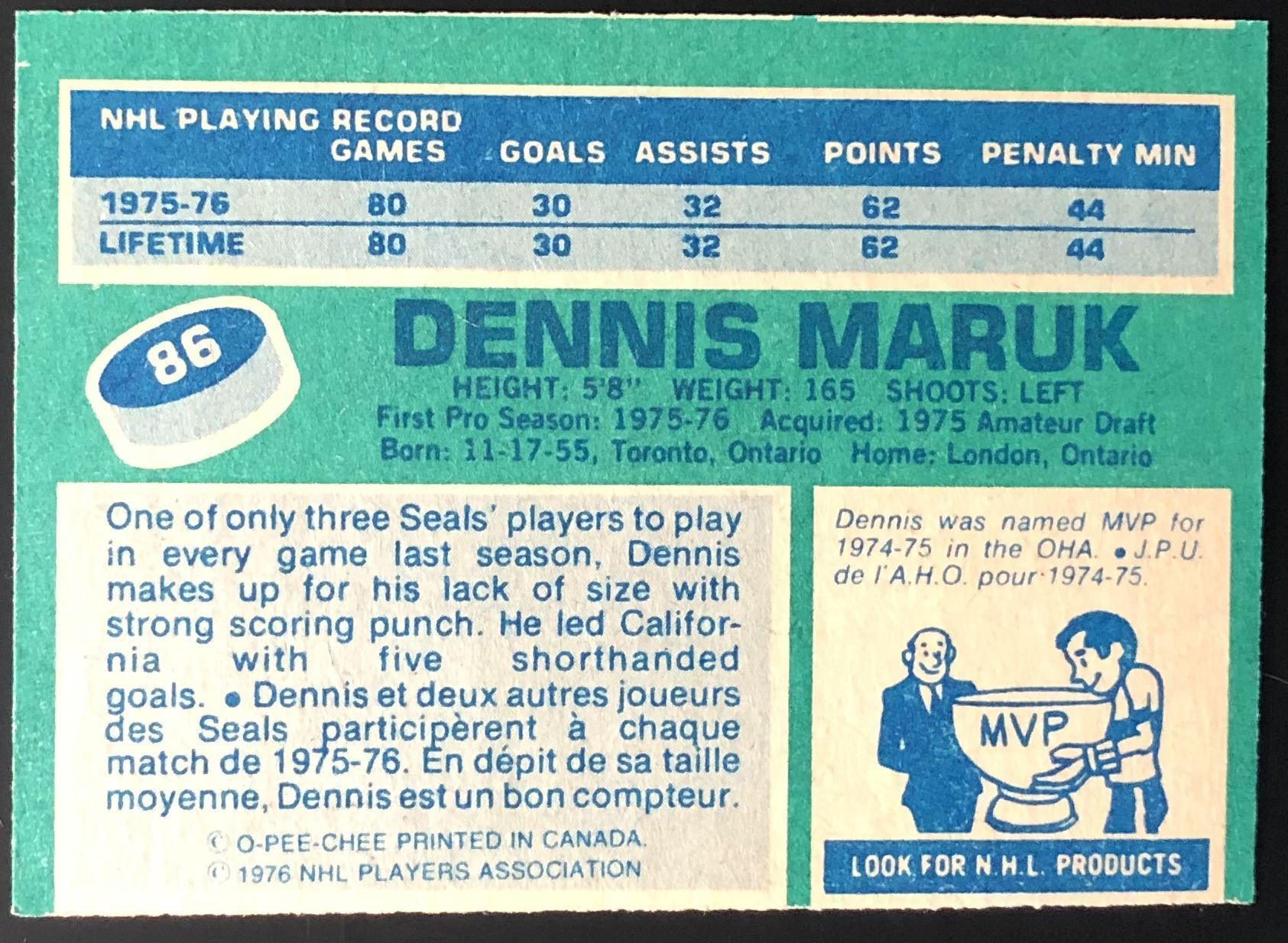 Card #86 NHL, hockey, vintage, OPC, rookie