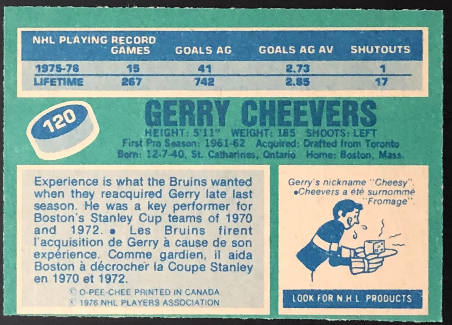 Card #120 NHL, hockey, vintage, OPC, hall of fame