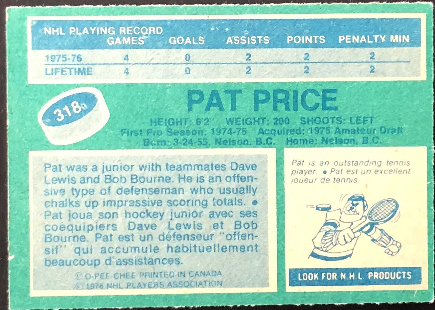 Card #318 hockey, NHL, vintage, OPC, rookie