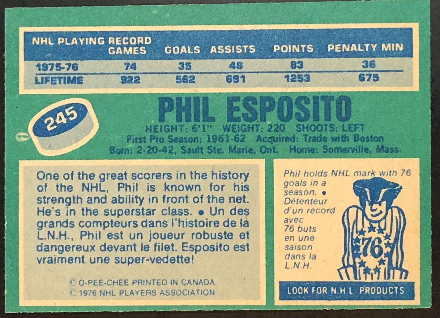 Card #245 hockey, NHL, vintage, OPC, hall of fame