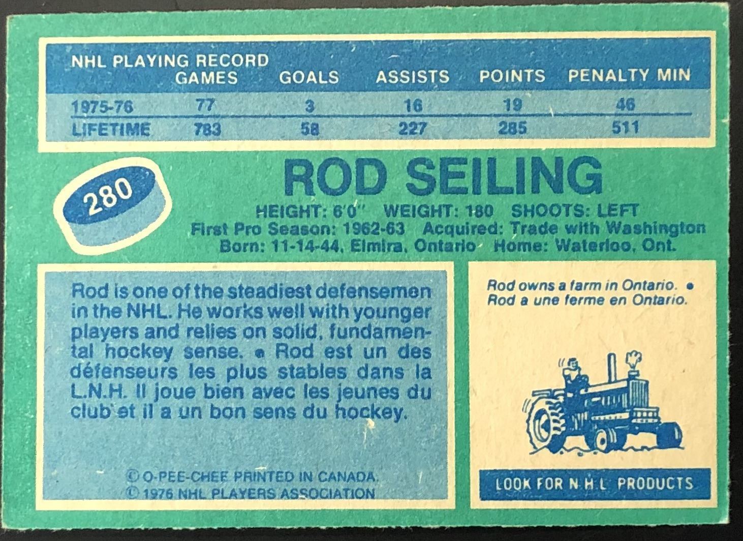 Card #280 NHL, hockey, OPC, vintage