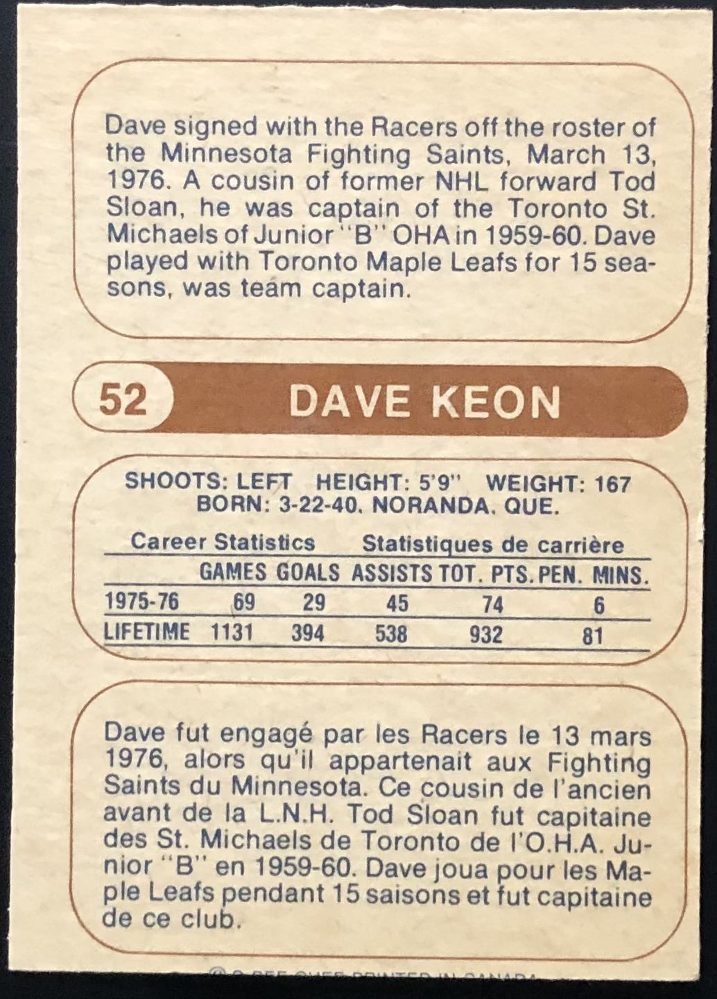 Card #52 WHA, hockey, vintage, OPC, hall of fame