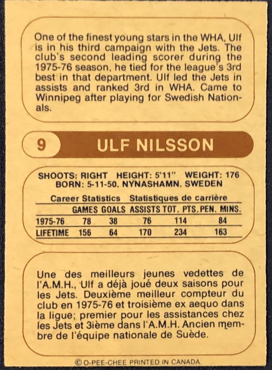 Card #9 vintage, WHA, hockey, OPC