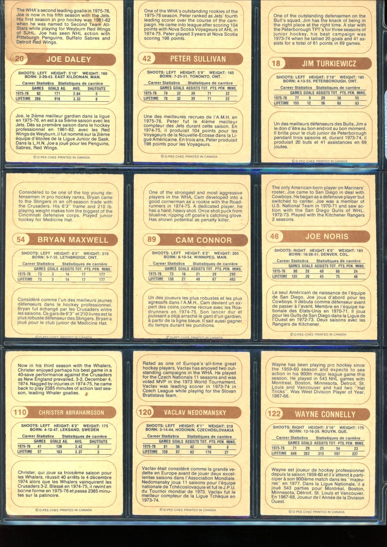 1976-77 O-Pee-Chee WHA Lot Of 9 Cards Various Players