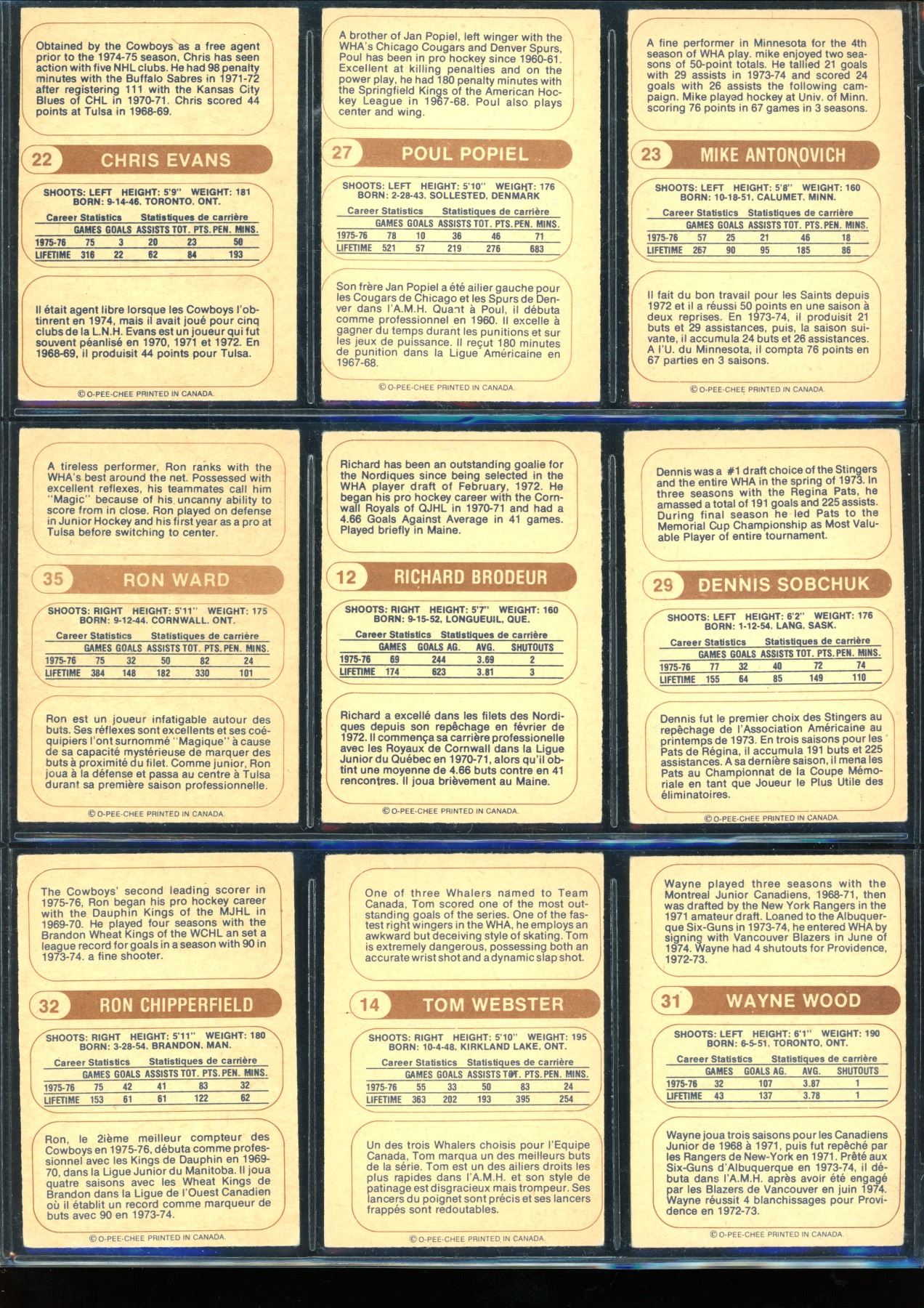 1976-77 O-Pee-Chee WHA Lot Of 9 Cards Various Players