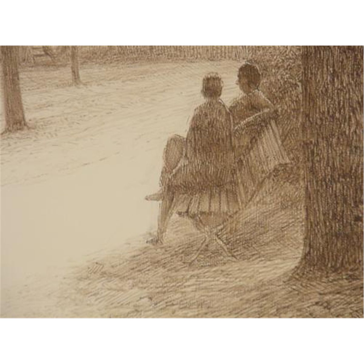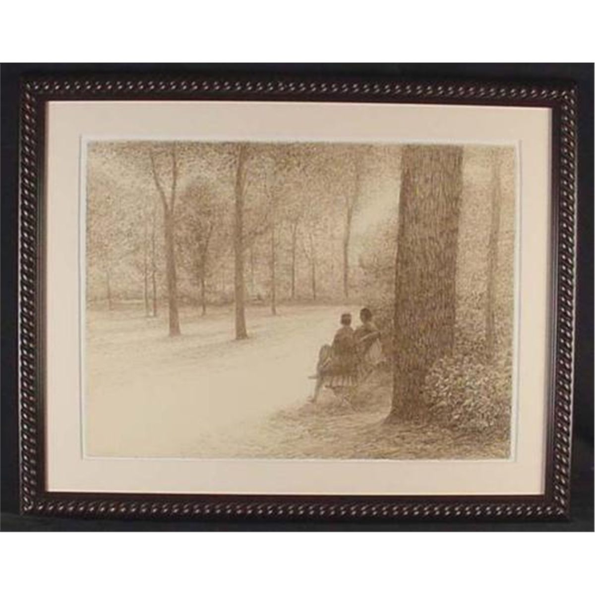 Offered here is an original Conte pencil drawing by well-known American artist, Harold Altman: Title: "Seated Couple" 1976 Conte pencil on paper Signed by the artist in pencil LL Drawing: 22 × 30 Framed size: 32 × 39½ Drawing appears to be in excellent condition; has not been examined outside of the frame Twisted dark wood frame shows slight signs of age and use; readily touched up Certificate of Authenticity Authenticity unconditionally guaranteedHarold Altman (American, 1924 - 2003) attended the Art Students League, the Black Mountain College, the Academie de la Grande Chaumiere in Paris, and is a graduate of the Cooper Union Art School. Altman's work has been exhibited at many international museums and galleries and is represented in nearly every significant collection in the world, including the Museum of Modern Art and the Whitney of New York, the Brooklyn Museum, the Victoria and Albert Museum of London, the Stedelijk Museum of Amsterdam, the Kunst Museum of Basel, the Royal Museum of Fine Arts of Copenhagen and the Bibliotheque Nationale of Paris. The artist has been the recipient of two Guggenheim Fellowships, a Tamarind Lithography Fellowship, a National Institute of the Arts and Letters Award, a Fulbright-Hayes Senior Research Fellowship for work in France and a National Endowment for the Arts Grant. * * A very representative and masterful Altman original - an important acquisition for the discerning collector.