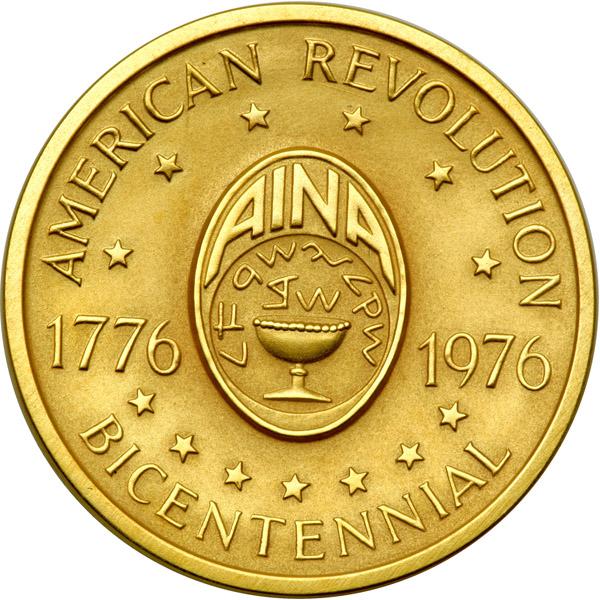 1976 American Revolution Bicentennial Gold Medal. 42.8 gr. Struck in 14 kt gold by The Medallic Arts Co. #45. Uncirculated.