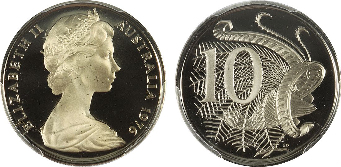 1976 Australian QEII Ten Cent Coin - PCGS PR 67 DCAM
