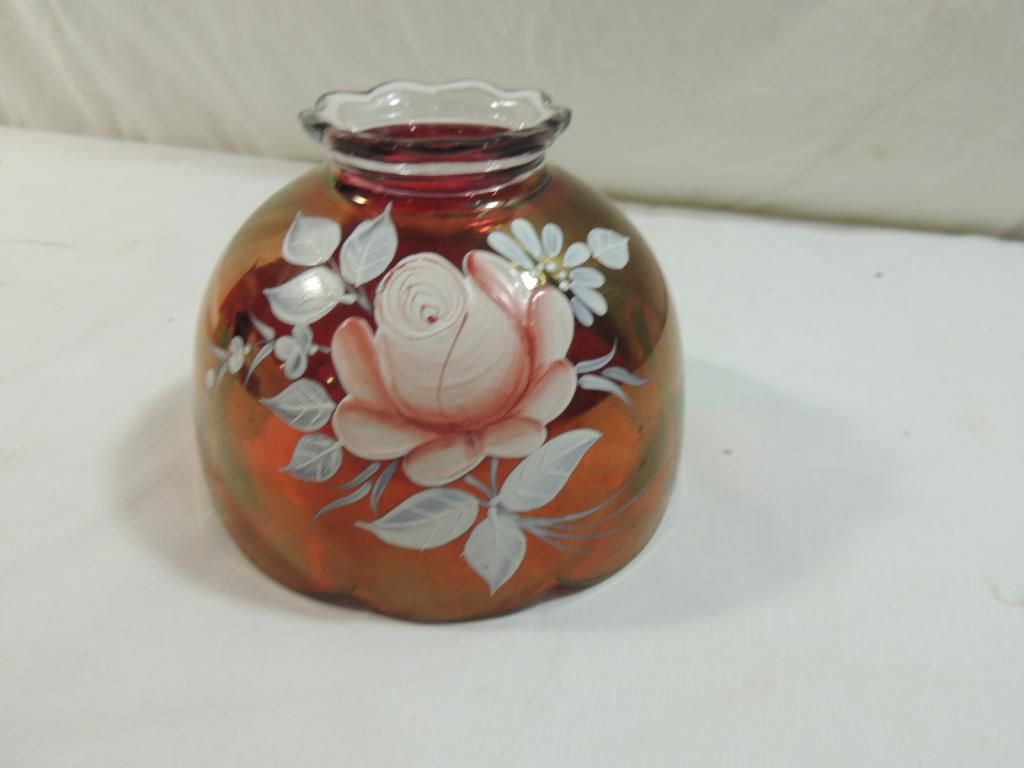 B. WEISS HAND PAINTED GLASS SHADE. CARNIVAL GLASS HAND PAINTED GLASS SHADE. AS SHOWN SEE PHOTO FOR MORE DETIALS.