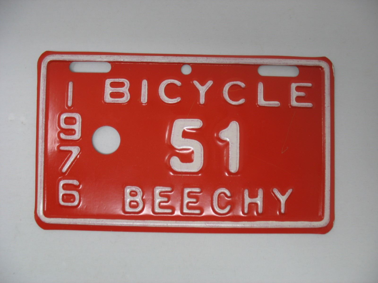 1976 BEECHY BICYCLE LICENCE PLATE (Mint Condition) 3 1/4 inches by 5 3/8 inches