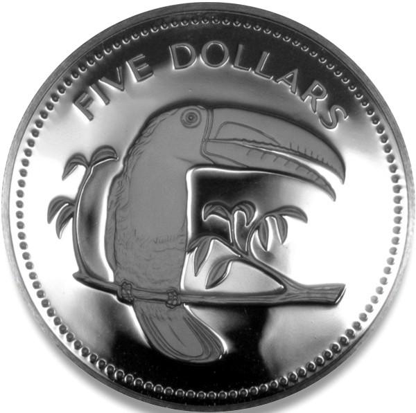 1976 BELIZE SILVER $5 PROOF DCAM COIN-GEM