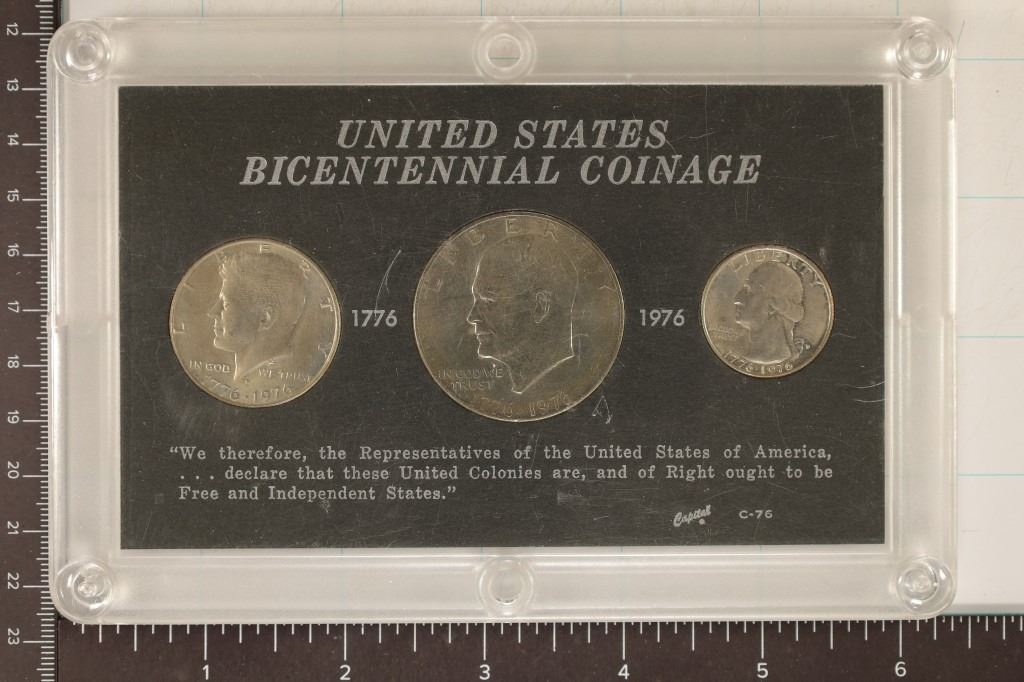 CONTAINS: 1976-D WASHINGTON QUARTER, KENNEDY HALF DOLLAR AND IKE DOLLAR