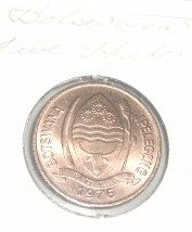 1976 BOTSWANA FIVE THEBE *VERY RARE HARD TO FIND-UNC HIGH GRADE COIN*!! COIN CAME OUT OF SAFE!! ***Coin, Currency & All Items Listed in this auction - Grades, Conditions and Values are not Safe Deposit Coins LLC Responsibilty. Grades, Condition and Values are determined by Consigner(s) & Buyers ONLY