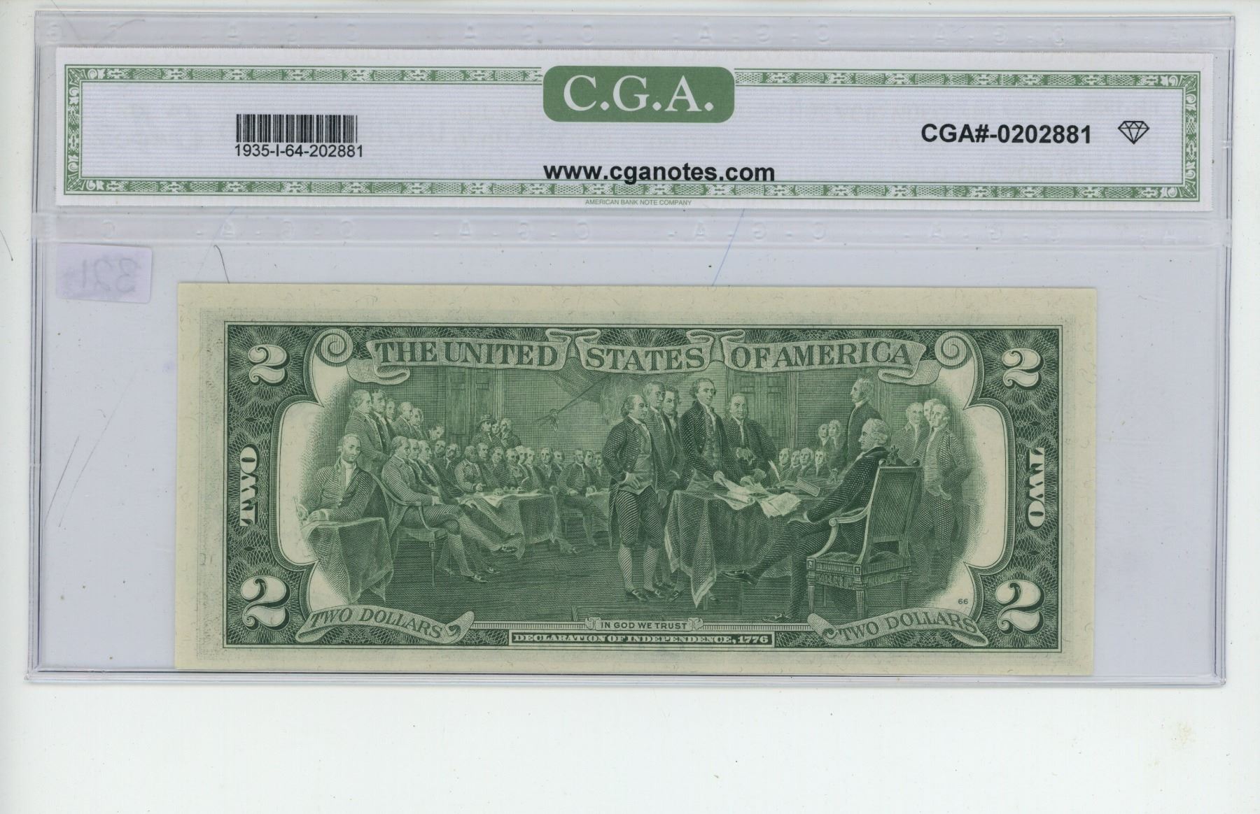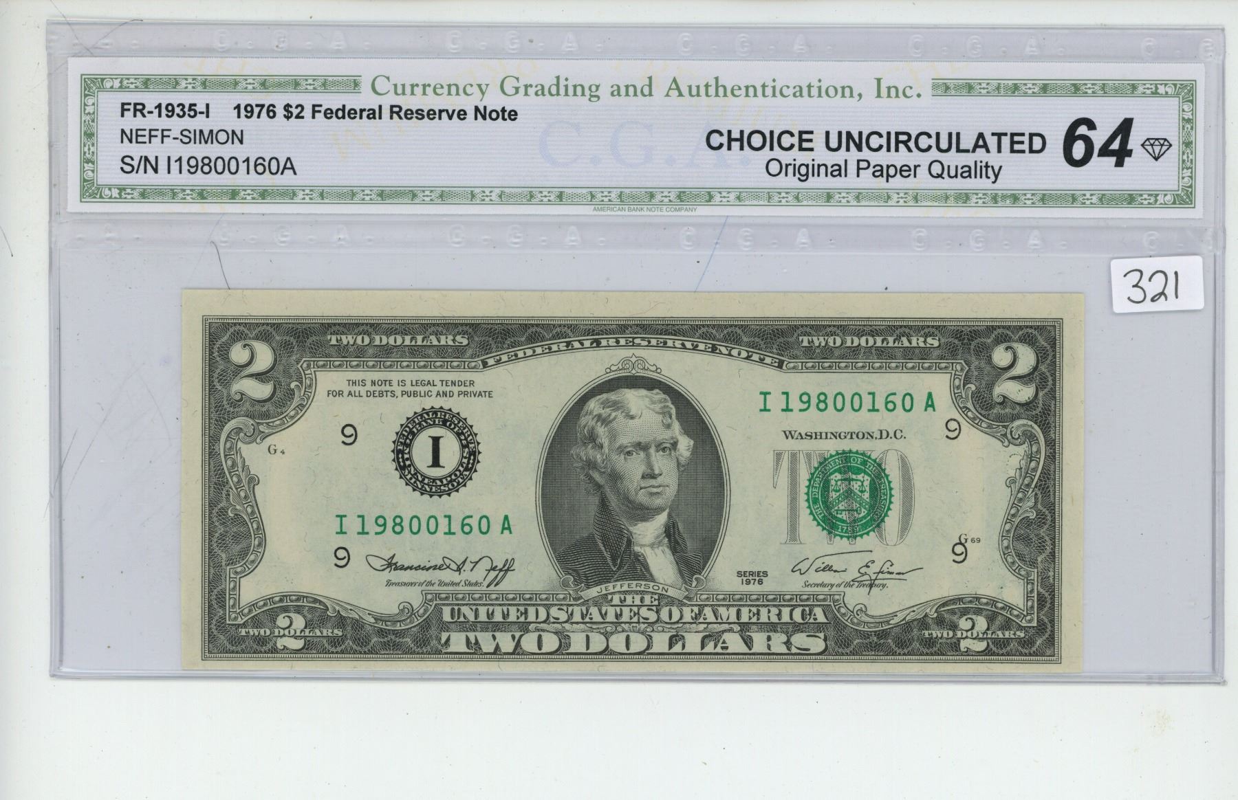 1976 CGA graded, US 2 dollar bill - Neff/Simon - I19800160A - UNC64