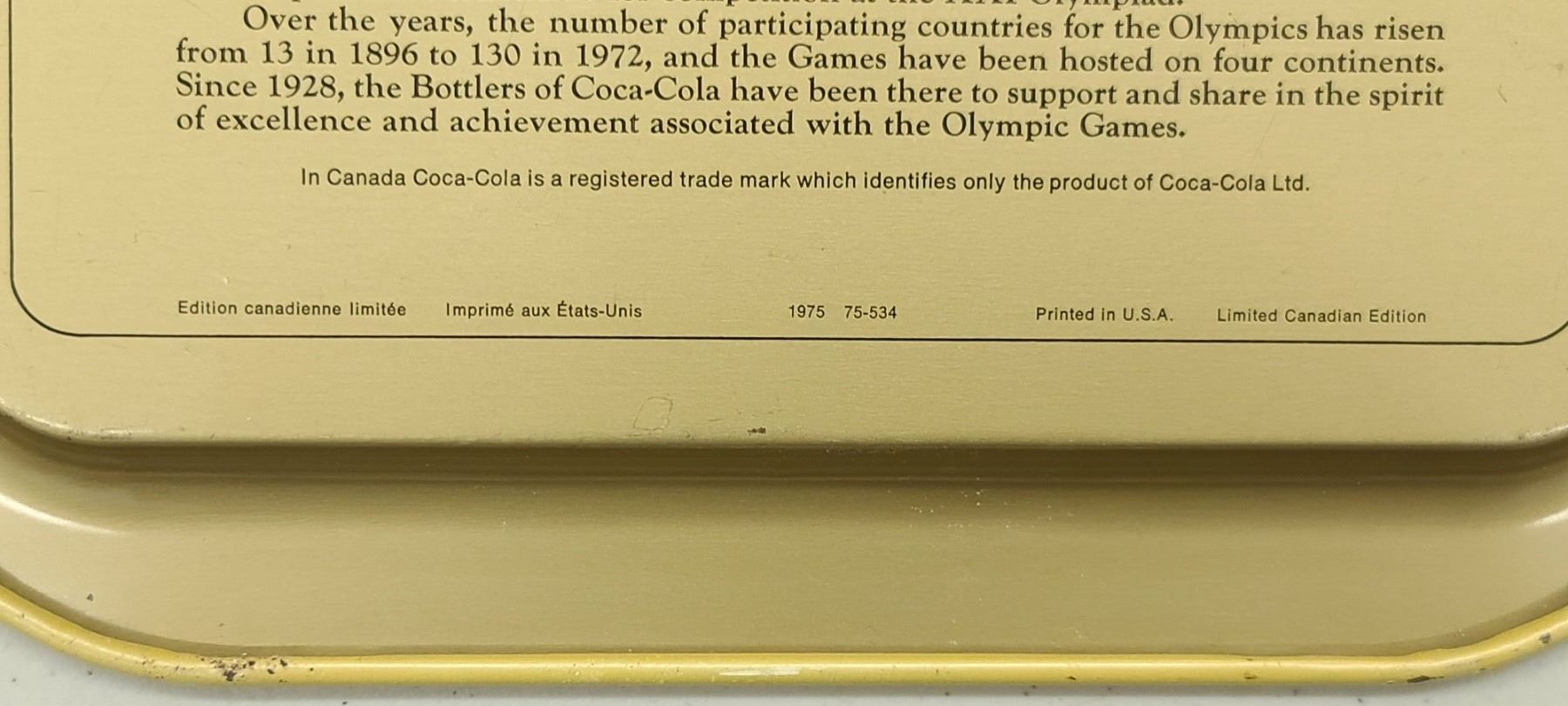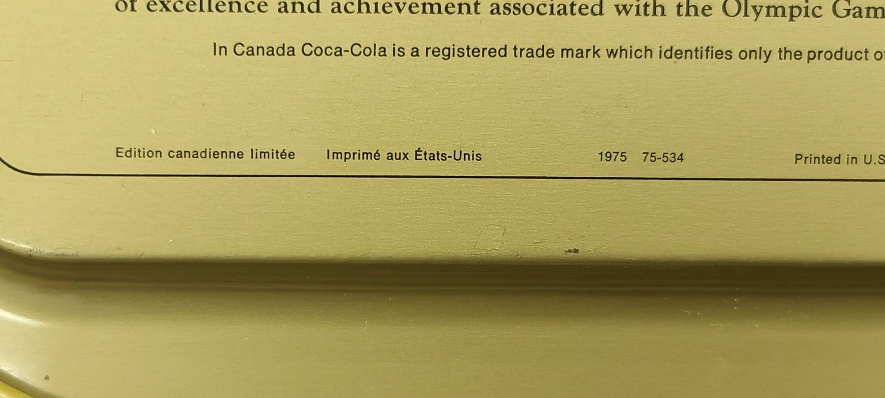 1976 COCA COLA MONTREAL OLYMPIC TRAY ISSUED 1975