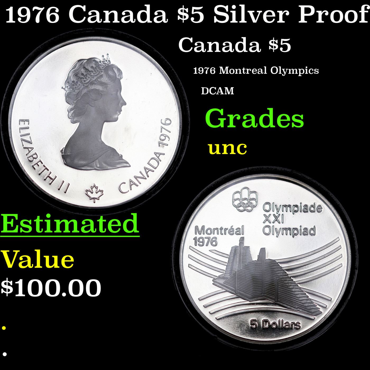1976 Canada $5 Silver Proof Grades Brilliant Uncirculated.
