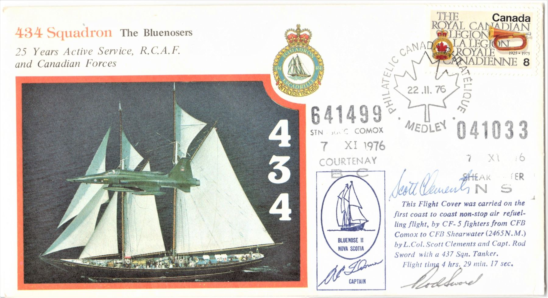 This flight cover was present during the first coast-to-coast non-stop air refuling flight from CFB Comox to CFB Shearwater