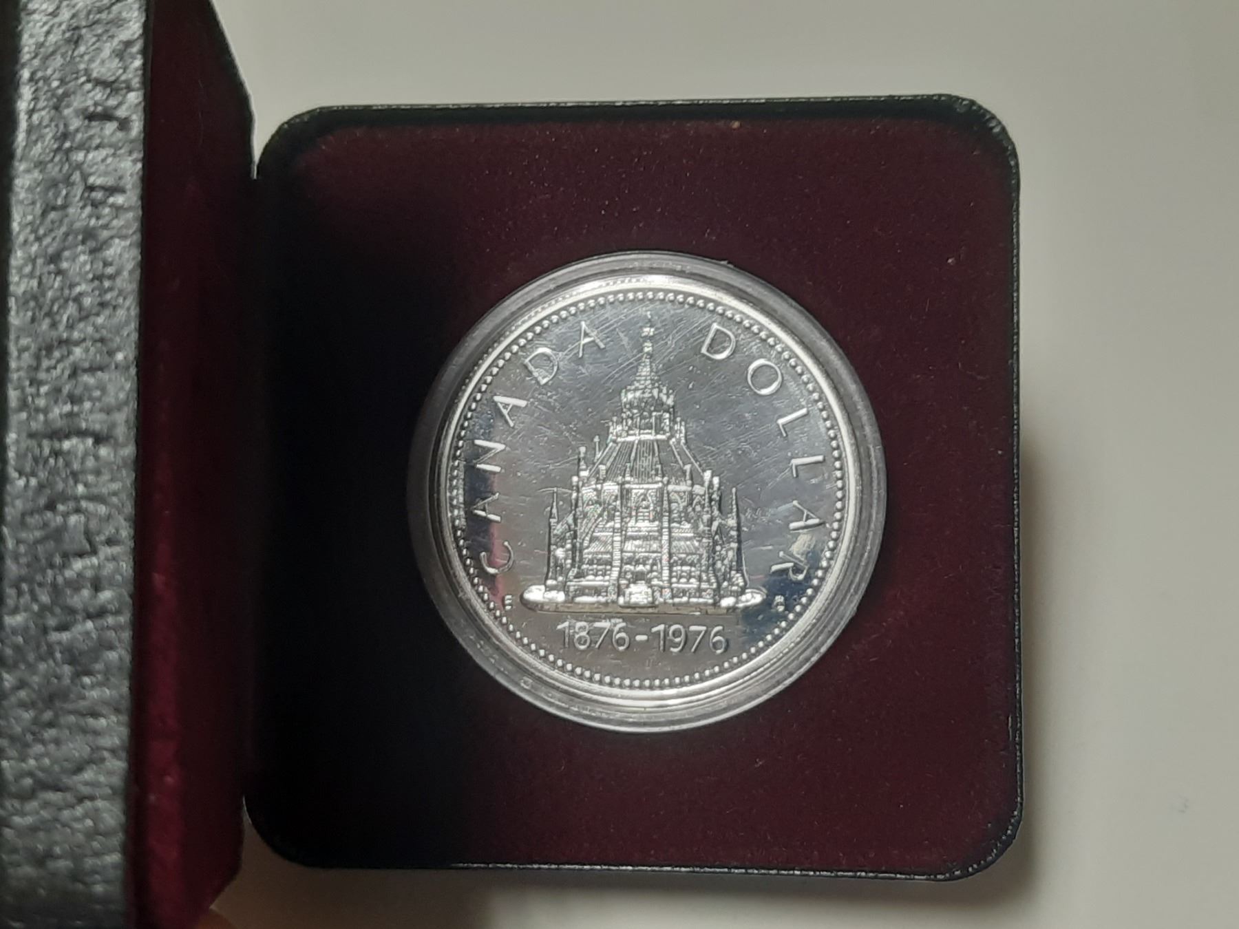 1976 Canadian Specimen Silver Dollar commemorating the 100th anniversary of the Library of Parliament.