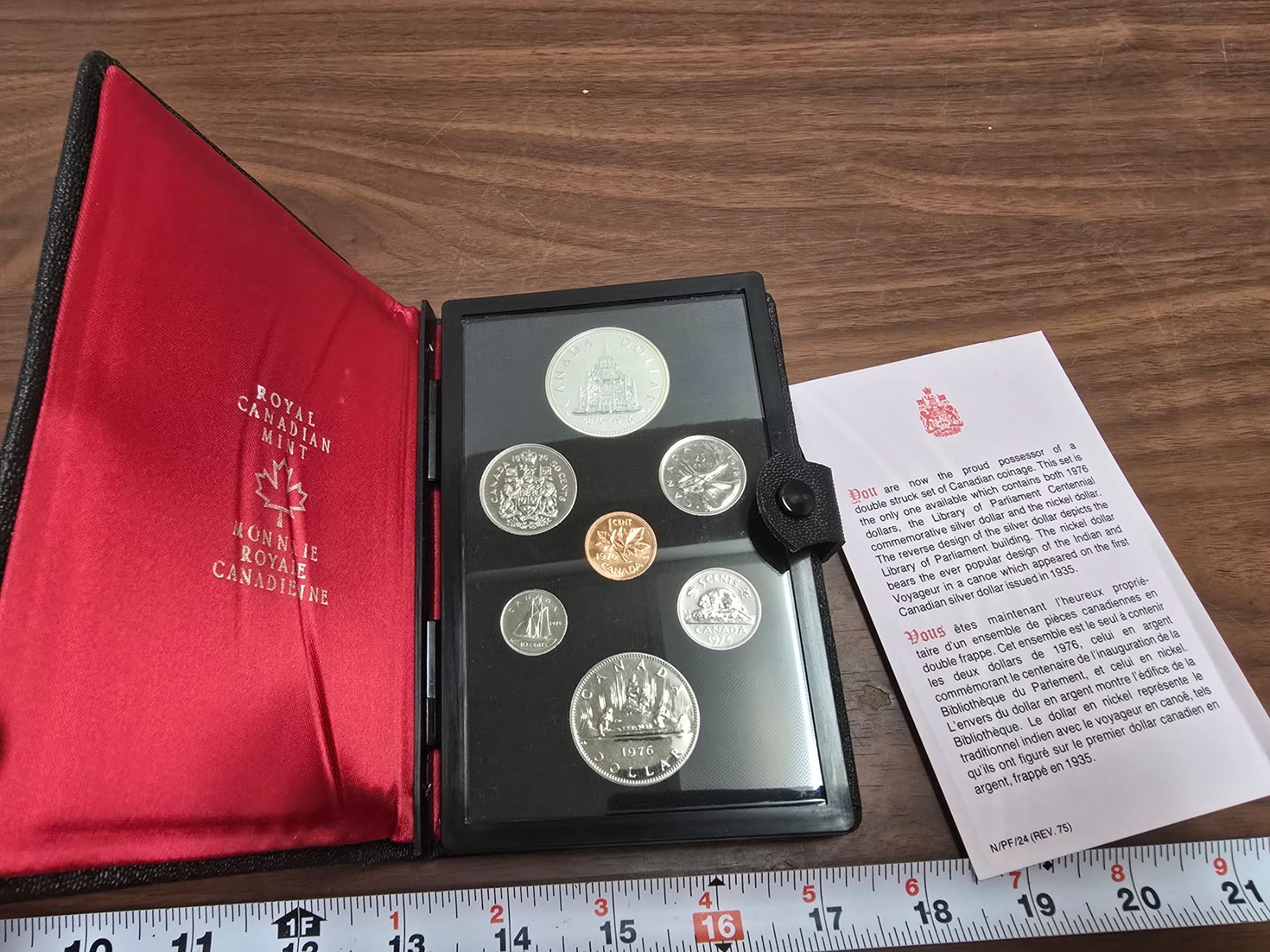1976 Canadian double dollar, 7 coin specimen set. Includes "Parliament Library" silver dollar.
